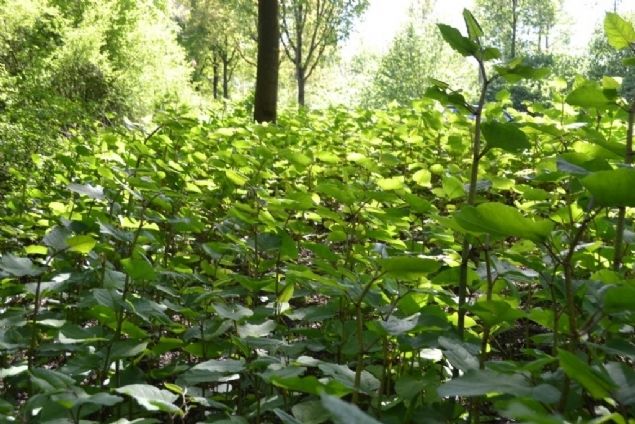 Situatie voor aanvang: genoeg Japanse duizendknoop om op te testen