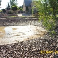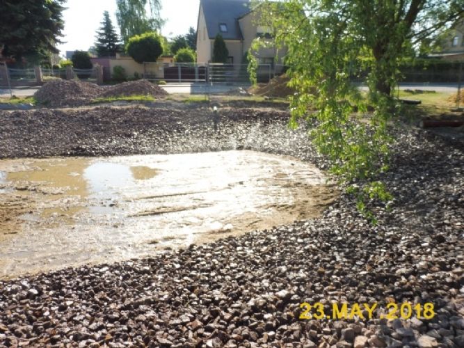 In de Duitse plaats Petersroda heeft Rootbarrier een waterdoorlatende worteldoek geplaatst. In de vijver waren de wortels van het riet door de leenbodem heen gegroeid.