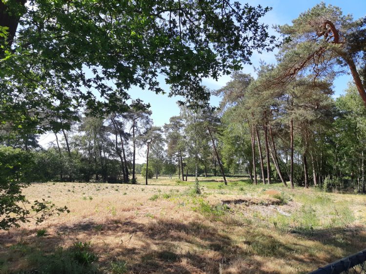 Links de oefengreen, met rechts de bunker die vol onkruid staat