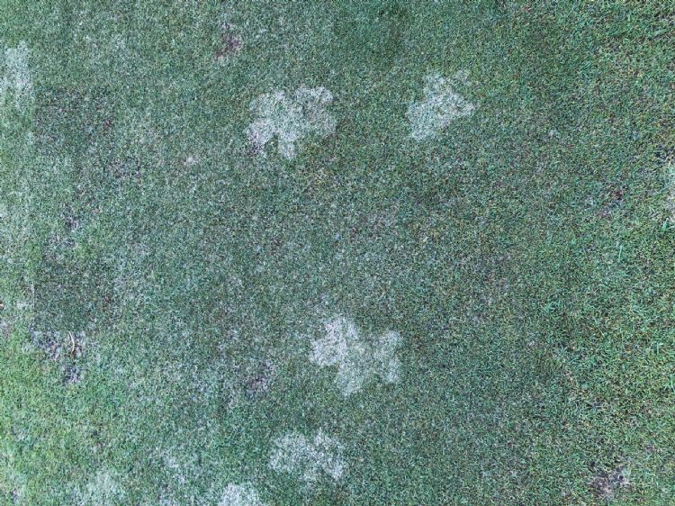 bezanding, dan bladval; en bespuiting (ik neem aan ijzer) zonder blad van de green te doen