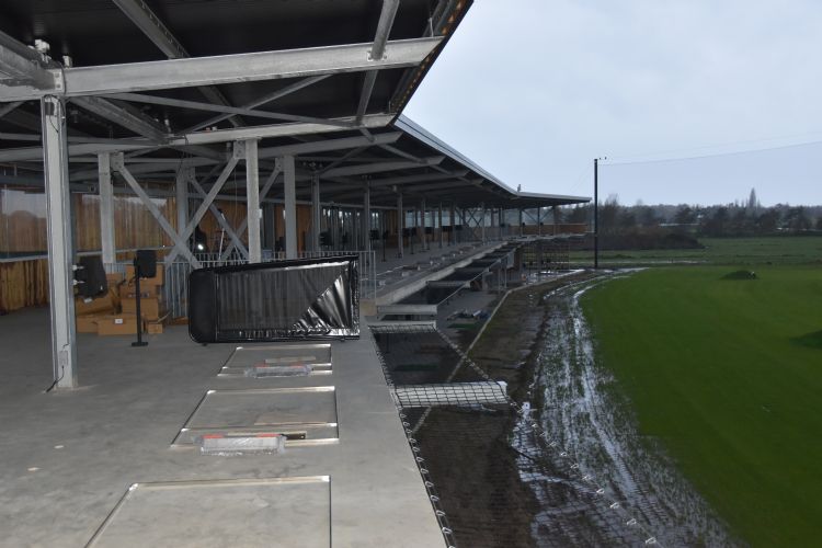 Oskam is enthousiast over dit golfbaanproject dat laagdrempeligheid, golfplezier en entertainment als hoofddoelstellingen in het businessplan heeft staan. De eerste drie greens van de 9-holes par 3 werden in oktober 2022 ingezaaid en op deze koude en vochtig novemberdag van het bezoek kleuren ze al groen. Deze drie holes liggen naast en achter de immense drivingrange en naast het clubhuis dat als overdekt afslaggebouw fungeert. Alan RijksGolf Course Design tekende het ontwerp van de golfbaan en de drivingrange. De uitvoering ervan is in handen gegeven van Jos Scholman Groen. De laatste onderneming in de grond-, weg- en waterbouw en sport- en cultuurtechniek uit Nieuwegein heeft momenteel circa tweehonderd vaste medewerkers in dienst.