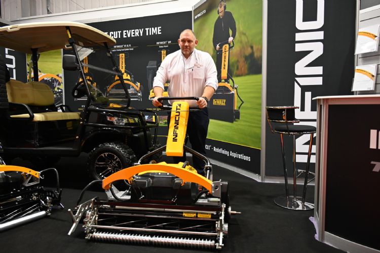 John Deere is natuurlijk een absolute wereldnaam, maar is in Nederland op dit moment misschien wat minder zichtbaar als het om specifieke golfmachines gaat. In Engeland is daar echter geen sprake van en hoort het bedrijf bij de top twee van aanbieders van golfmachines, samen met collega-fabrikant Toro. Als het gaat om elektrische machines is John Deere wellicht wat minder actief. Toppers in de BTME-stand waren de John Deere 7700 A PrecisionCut-fairwaymaaier en een volledig elektrische handgreenmaaier. De elektrische handgreenmaaier 185 E-Cut heeft een maaibreedte van 457 mm. Het grotere model is de 225 E-Cut met een werkbreedte van 559 mm.