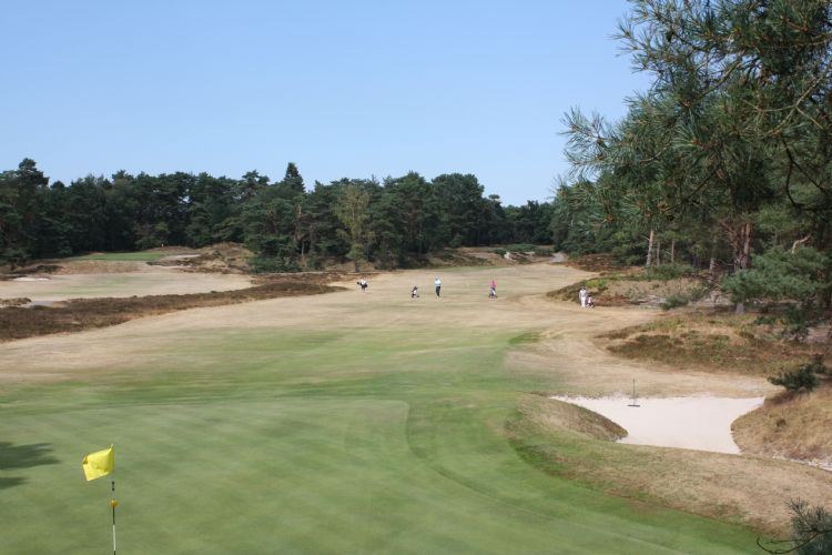 | | Door hitte en gebrek aan regen verkleurt de golfbaan. (Foto: Jan van Mondfrans) |