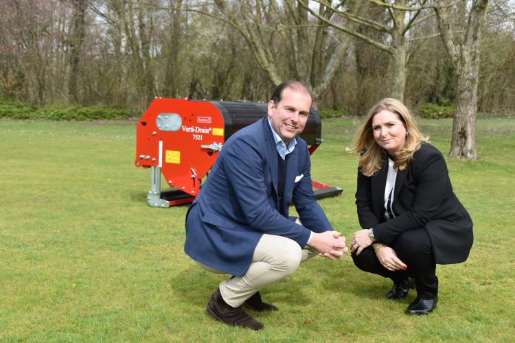 | | Herman en Justine de Bree en een Verti-Drain, de machine die een werkwoord waard is in de Dikke Van Dale. |