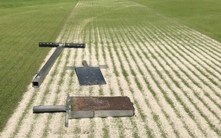 | | GKB maakt regelmatig gebruik van de testgreen bij de golfclub. Hier wordt de Sandfiller getest. |