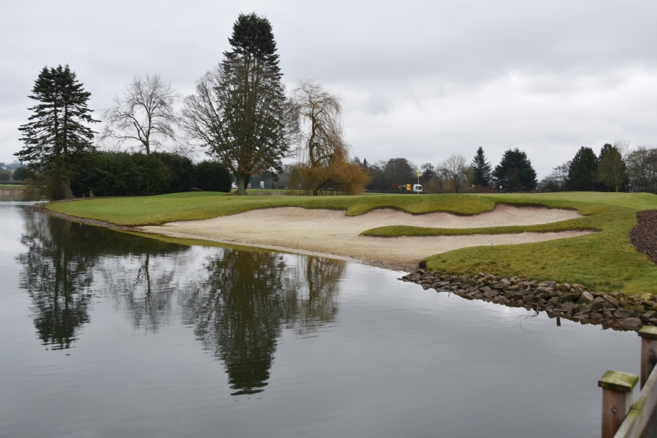 Coursemanager Cullam Wark heeft twintig E-Z-GO's in JCB-bedrijfskleuren klaargezet voor een rondrit langs de 18 holes, samen met drie greenkeepers uit zijn team. De golfbuggy's zijn een belangrijk onderdeel van de hospitality. De baan wordt in januari en februari altijd gesloten om onderhoud te kunnen uitvoeren. Wark vertelt allereerst dat er sprake is van een lage speeldruk op de baan: dagelijks gemiddeld zo'n 30 golfers. Naast twee chipping-greens telt de baan 18 holes, met een totale greenoppervlakte van 2 hectare, dus méér dan 1.000 vierkante meter per green. Deze greens en ook de foregreens en aprons worden met smalle units met de hand gemaaid (met respectievelijk 18- en 22 inch-Jacobsen-kooimaaiers). Wark: 'Handmatig maaien heeft als groot voordeel een hogere kwaliteit. De knipfrequentie is hoger dan bij een standaard triplexmaaier. Bovendien gaat er minder gewicht over de greens.'