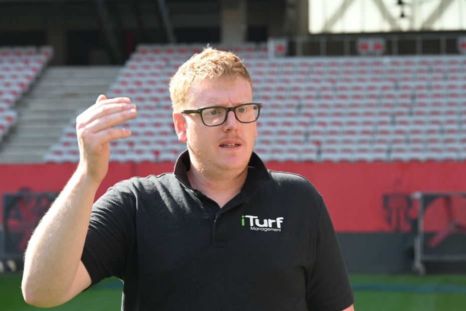 OGC Nice is een van de minder bekende clubs in de Franse Eredivisie, oftewel Ligue 1. Net als in Nederland wordt de divisie bepaald door een aantal heel grote clubs. In Frankrijk is dat allereerst Paris Saint Germain. OGC Nice staat op dit moment op de vijfde positie. OGC Nice beschikt over een zogenaamde Lay & play-baan, die gemiddeld één keer per jaar wordt vervangen. Deze 3 cm dikke hybride graszode ligt op een ondergrond van lava, met daaronder een drainagelaag van rivierstenen. Dit betekent dat de mat al het voedsel en water uit een laagje moet halen dat feitelijk maar 3 cm dik is - iets wat we meteen merken als we door Malé worden uitgenodigd om het heilige gras van OGC Nice te betreden. De mat is redelijk hard te noemen. Voor Malé is dat echter niet het grootste probleem. Je kunt je voorstellen dat je bij een grasmat die niet dieper wortelt dan 3 cm feitelijk geen enkele buffer hebt tegen droogteverschijnselen. Malé: 'Dat gaat werkelijk razendsnel. Als ik een klein plekje dry patch heb en ik ga een half uur koffiedrinken, heeft die plek zich daarna soms enorm uitgebreid. Ik moet altijd alert blijven. En ik moet ook de hele dag door beregenen; zelfs 's nachts moet ik een aantal keren de sproeiers aanzetten. Die enorm dunne toplaag vormt in normale jaren al een probleem, maar dit jaar is het nog een slagje erger.' Normaal wordt er in juli en augustus meestal niet gevoetbald; dan kunnen Malé en zijn team op vakantie. Dit jaar worden de Olympische Spelen in Frankrijk gehouden en ook OGC Nice heeft een deel van de olympische wedstrijden toegewezen gekregen. Malé blijft er rustig onder, maar meldt ook een aantal keren dat dit een nightmare is.