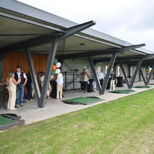 Hans Schaap en Joris Slooten trokken het openingskoord los, waarna een stortvloed aan golfballen uit een big bag neerdaalde op de driving range