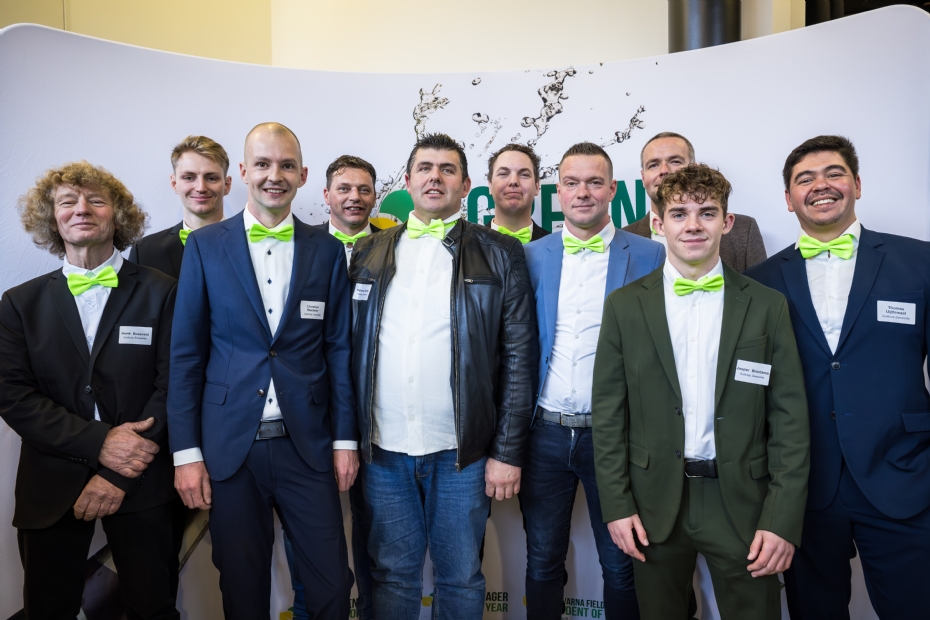 Naborrelen met diverse oud deelnemers en winnaars van de verschillende verkiezingen, zoals Bas Franssen (Husqvarna Fieldmanager of the Year 2024).