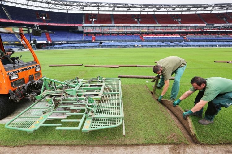 De complete grasmat werd vervangen omdat, door diverse concerten die onlangs in De Kuip zijn gehouden, het gras niet meer aan de kwaliteitseisen van Feijenoord voldeed. Erwin Beltman noemt het nieuwe gras 'de ultieme kampioensmat, waar in feite direct na het leggen topvoetbal op gespeeld kan worden'.
