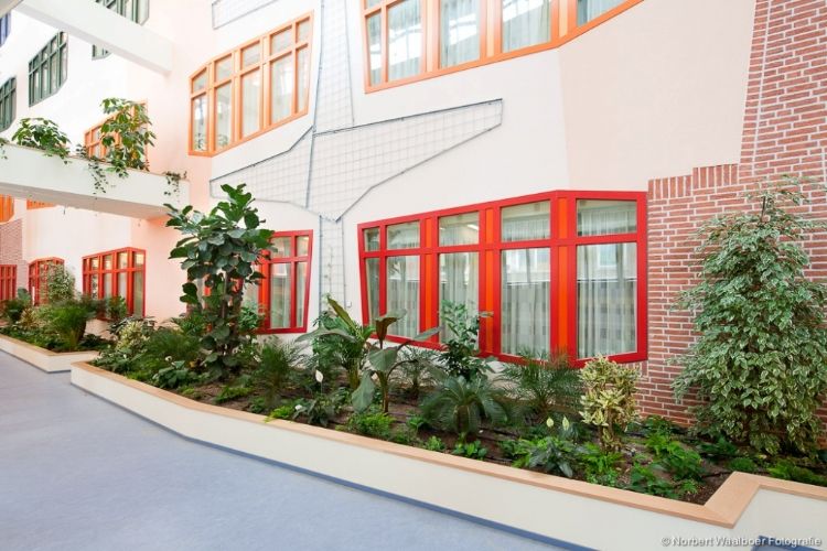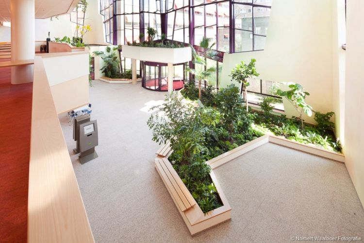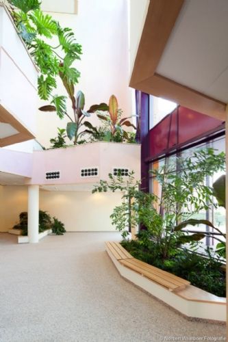 Het nieuwe Isala-ziekenhuis in Zwolle is ontworpen als een beterhuis. Diverse binnentuinen in het ziekenhuis, zogenoemde atria, vormen de overgang tussen de groene weelderige natuur rondom het gebouw en de organische omgeving binnen.