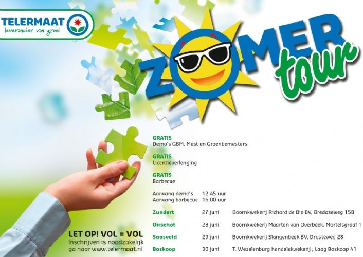 De aftrap wordt dit jaar gegeven op 27 juni bij Boomkwekerij Richard de Bie in Zundert. Daarna vinden bijeenkomsten plaats bij Boomkwekerij Maarten van Overbeek in Oirschot (28 juni), Boomkwekerij Slangenbeek te Saasveld (29 juni) en T. Wezelenburg handelskwekerij te Boskoop (30 juni). Geïnteresseerden wordt verzocht zich in te schrijven via de site van Telermaat.