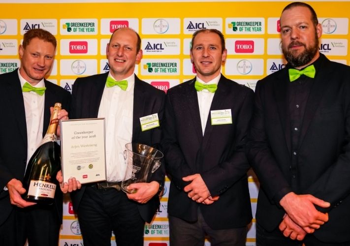 Voor alweer een vijfde keer werd donderdag 7 december de Greenkeeper of the Year-award uitgereikt. Dit jaar is de winnaar Arjen Westeneng, via aannemer H4A Groen als greenkeeper werkzaam op Golfbaan de Woeste Kop in Axel.