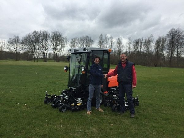 Theo Bestebroer (hoofdgreenkeeper van GC Cromstrijen) neemt de HR500 in ontvangst.