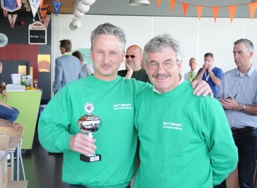 Tijdens de Kunstgras Demodag die door het vakblad Fieldmanager op 20 mei in De Meerrn werd georganiseerd vond ook de tweede editie van het NK Belijnen plaats. Een aantal teams streden met elkaar om de NK Belijnen trofee. Deze trofee werd in 2009 ex aequo gewonnen door AWC Wijchen in combinatie met Expoline en Woezik in combinatie met JMC Hagen. De prijs voor 2010 ging naar de firma Witterwit in combinatie met RKC Waalwijk. De winnende belijning werd verzorgd door Ronald de Nijs. OP de foto Willem Kersten van Witterwit (r) en Ronald de Nijs van RKC Waalwijk.