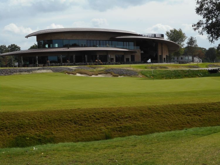 Het is niet druk op de baan; er worden voorlopig maar enkele tientallen leden per dag toegelaten, omdat de nieuwe holes nog kwetsbaar zijn. Naar verluidt zal er in de toekomst ook geen filevorming op Bernardus zijn. Er zit veel tijd tussen de teetimes en volgens onze bronnen zal het aantal rondjes voor gastspelers jaarlijks beperkt worden tot 25.000 (25.000 keer 150 is 3.750.000 euro, een mooi bedrag ...) We hoeven ons niet te haasten en doen dat ook niet omdat de mystery guest geen detail wil missen. Onderweg bestellen we ook een koffie (Nespresso) en een broodje bij de cateringkar die geregeld langskomt. Het broodje wordt enkele holes later gebracht. We praten onderweg ook nog even met twee dames die langs de baan wandelen. Het zijn golfsters en ze nemen vandaag een kijkje. ‘Het is hier heel mooi’, zeggen ze. ‘En wat heel fijn is, is dat we hier niet weggekeken worden, we mogen gewoon rondkijken.’