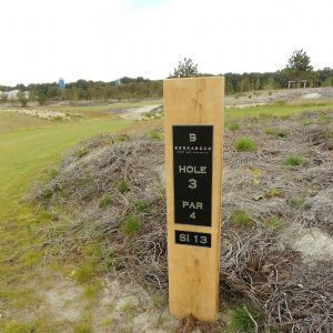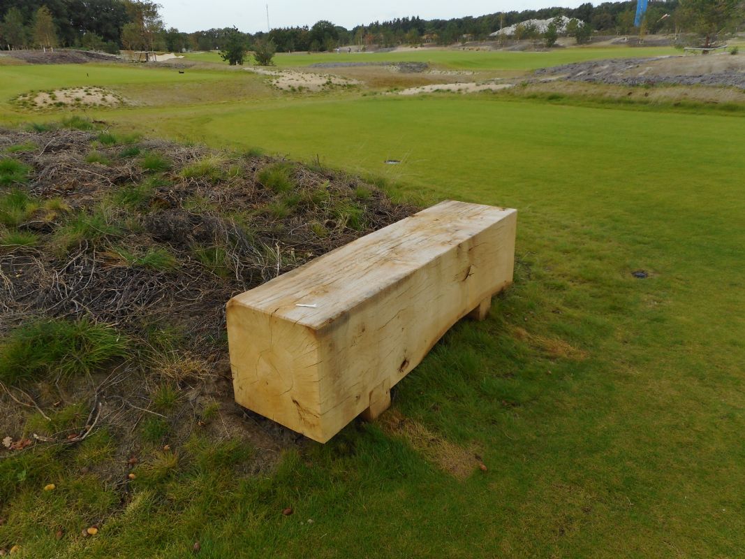 ‘Een onbeperkt budget betekent ook niet per definitie dat er oog is voor het kleinste detail, maar dat is wel zo op Bernardus’, vervolgt de mystery guest. ‘Van het gras tot baanmeubilair. Het baanmeubilair is sober en van hout. Bij de tees staan geen opzichtige borden maar mooie onopvallende houten palen. De bordjes “Ground under repair” en “Next tee” zijn ook zeer verzorgd. De massieve banken bij afslagplaatsen zijn van boomstammen gemaakt. Schuilhutten zijn prachtig weggewerkt in heuveltjes en dat geldt ook voor de range bij het clubhuis. De fairways zijn onkruidvrij en de 100 procent roodzwenk-greens zijn helemaal schoon en hard, vermoedelijk al heel veel gedresst in de aanloopperiode. Ik heb enorm goed staan putten en dat komt omdat de greens waanzinnig eerlijk zijn; je ziet de lijnen en de bal doet wat je verwacht. Je ziet verder aan verfstipjes op de greens en tees dat de maailijnen nauwkeurig worden uitgezet. Ik heb nergens scalperingen of schade gezien en ook nergens maaisel. De greenkeepers hier hebben geleerd om achterom te kijken voordat ze verder gaan. Het zand in de bunkers – waar ik ondanks mijn caddie vaak in lag! – is overigens ook perfect. Vrij grof en dat geeft veel stabiliteit.’