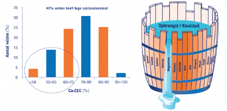 Over de noodzaak van calcium voor de grasplant kunnen we kort zijn. Het is een onmisbaar voedingselement en zorgt onder meer voor een stevige celwand, waardoor ziektekiemen minder kans krijgen om de plant binnen te dringen. Calcium is daarmee van groot belang voor de plantweerbaarheid! Calcium wordt snel in de plantencel vastgelegd. Bij tekorten elders in de plant kan de grasplant dit vastgelegde calcium niet meer verder transporteren. Een tekort heeft daardoor vooral consequenties voor het jonge blad van de grasplant. Dit wordt vatbaar voor schimmels en ziektekiemen en de plantengroei stagneert.