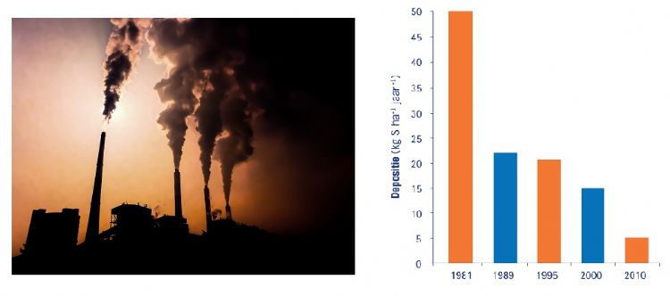Door de schonere industrie is de dispositie van zwavel drastisch teruggelopen