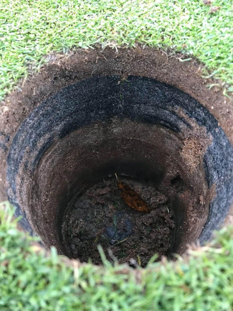 'In het begin van het jaar waren er tijdens het holes beluchten verschillende flights die interesse toonden. Ik stak met de holecutter een plug uit met veel black layer, een zwarte laag in de bodem. Al snel snapten ze dat black layer niet de bedoeling is.'