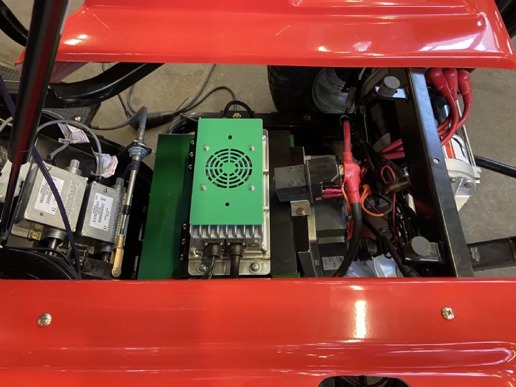 | | Smithco heeft de acculader en het 160 Ah-lithiumaccupakket keurig weggewerkt in de machine. |