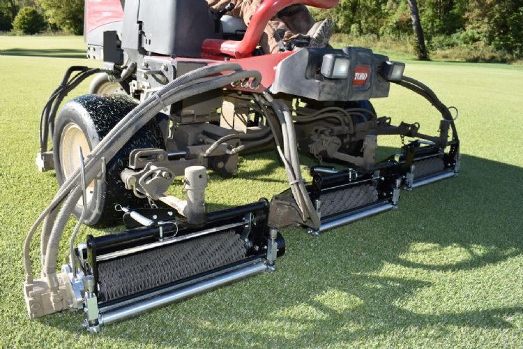 Het unieke aan de cassette van True-Surface is volgens Spek dat deze op handgreenmaaiers past. 'Daarmee zijn zij de enige', aldus Spek. 'Hij past op handgreenmaaiers met floating maaiunits, zoals de Toro 2100 en Jacobsen Eclipse. Met een extra ombouwsetje past dezelfde cassette ook op een Triplex, en eventueel zelfs op de kooien van Toro-fairwaymaaiers. Als je dan bijvoorbeeld wilt verticuteren, hang je hem gewoon aan de fairwaymaaier en kun je over de volle breedte van de machine verticuteren.' In het Green & Fairway Collection-systeem is er keuze uit dertien verschillende cassettes.