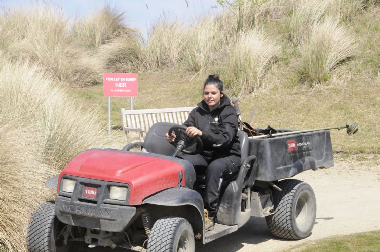 Batista Rodriguez is ambitieus in haar vak. Toen ze als leerling tuinaanleg vanuit de Broederschool Biotechnische en Sport stage ging lopen op Wase Golf, wist ze al snel dat greenkeeping de job voor haar was. 'Je kunt veel buiten zijn en het is toch wat minder intensief dan werken als hovenier.' Batista Rodriguez vindt het daarom ook jammer dat jonge hoveniers maar amper in aanraking komen met golf en het vak van greenkeeper. 'De studenten die samen met mij tuinaanleg studeerden, dachten altijd dat ik alleen maar aan het maaien was, maar het is natuurlijk veel meer.'
