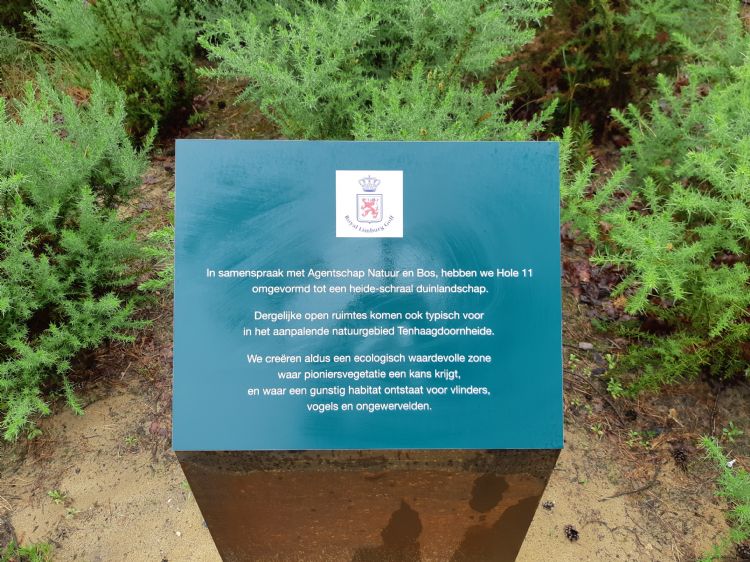 Koninklijke Limburg Golf ligt in natuurgebied Tenhaagdoornheide, een gebied van 360 hectare met heide, bossen en stuifzanden. Deze natuur speelt ook op de golfbaan een grote rol. Sinds 2018 heeft de golfbaan, in samenwerking met het Agentschap voor Natuur en Bos (ANB), zo'n 25.000 heideplanten geplant, geplagd en gezaaid om deze weer op te waarderen. 'Dat vraagt veel inspanning', zegt Driesen. 'Heide breidt heel traag uit en het moet goed onderhouden worden, bijvoorbeeld door het onkruid te plukken.' Met het ANB heeft de golfbaan ook een natuurbeheerplan opgesteld, om de samenwerking te optimaliseren. Driesen: 'We merken als greenkeepers dat we fouten maken in het heide- of bosbeheer. Natuurbeheerders snappen vaak niet waarom wij stikstof toedienen, wij snappen niet waarom zij plukken in plaats van maaien. Om dat te optimaliseren, zijn we een samenwerking gestart. Die bouwen we bewust nu al op, zodat we een voorsprong hebben als het straks echt nodig is.'
