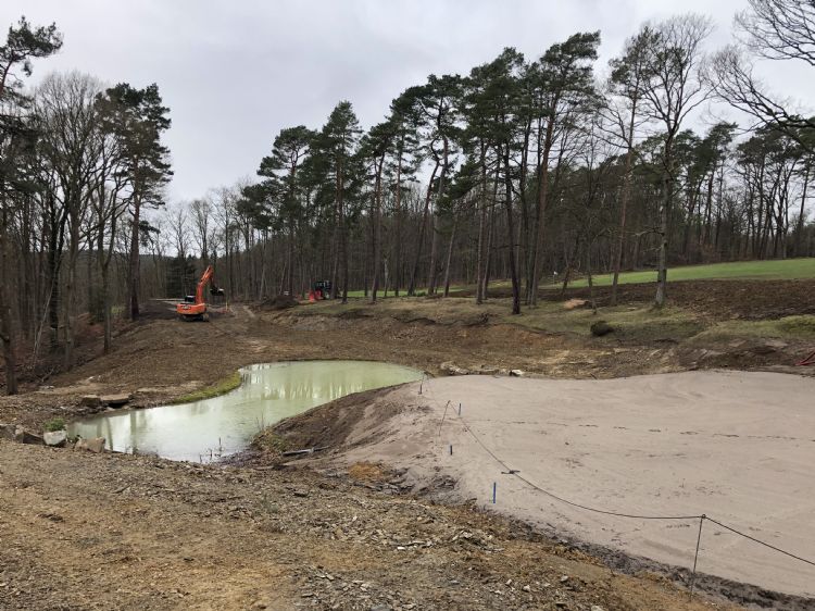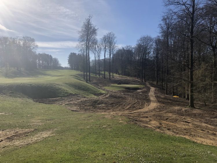Nieuwe greens op Golf des Sept FontainesHoles 14, 15 en 16 van "La foret" werden bijna helemaal opnieuw aangelegd van tee tot green. De afgelopen jaren werden er reeds veel verbeteringswerken uitgevoerd, meestal ging het om een bunker of wat tees, maar nu werden er ook nieuwe greens aangelegd. Aangezien we hier in het heuvelachtig gebied rond Brussel zitten is oppervlakte water een probleem. Het oppervlakte water loopt over de greens en blijft in de laagtes staan. De bomen bestanden zijn de afgelopen jaren veel te fors gegroeid en er is te weinig licht, lucht en zon. Zoals op vele banen werden ook hier vele bomen gerooid. Green 15 lag onderaan in een vallei en grasgroei werd onmogelijk. Er werd dus beslist om de hole in lengte in te korten door de tees achteruit te schuiven, veel lager te plaatsen, zodat ze beter in hun omgeving passen, en de green bovenop de heuvel te leggen in plaats van onderin de vallei. Om de green zichtbaar te maken, en ervoor te zorgen dat het water van de omgeving niet continu over de hole hoeft te lopen, werden er duizenden kubieke meters grond verplaatst. Er werden op alle holes catchbasins geplaatst. De hole strategie werden helemaal herbekeken en bunkers werden verplaatst en vernieuwd. Op deze holes werd ook de volledige beregening vernieuwd in samenwerking met het greenkeepersteam en een lokale specialist.Naam opdrachtgever: Golf des Sept Fontaines Contactpersoon opdrachtgever: Emmanuel Weymeersch Contactgegevens opdrachtgever:+32.478.27.93.44 Naam architect: Diamond Golf Architects Contactpersoon architect: Dimitri van Hauwaert Contactgegevens architect: +32.497.55.55.44 Contactpersoon aannemer: Sjoerd Van der Heyden Contactgegevens aannemer:+49.173.350.15.52