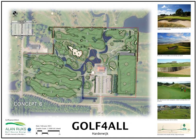 Nieuwe 9-holes golfbaan op Golf4AllOp het bestaande golfbaancomplex van Golf4All te Zeewolde wordt een nieuwe 9 holes golfbaan aangelegd. Het ontwerp voor deze baan komt van Alan Rijks. Doordat de huidige golfbaan wordt omgetoverd tot een zonnecellenpark blijft er ± 10ha. over voor deze uitdagende 9 holes golfbaan. Er komen nog veel meer activiteiten bij het bestaande clubhuis, want de enorme gastvrijheid van de eigenaar en personeel is uniek in Nederland.