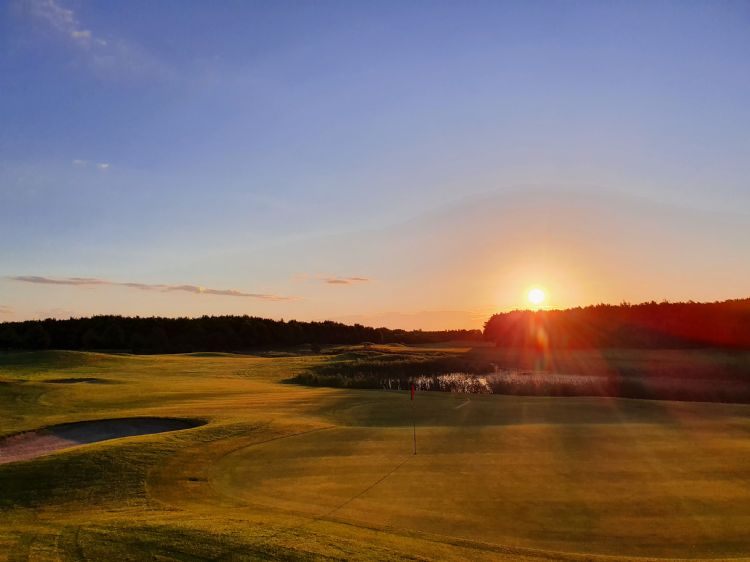 | | Als bonus, nog een foto van Ten Brinke: de prachtige zonsopkomst op de golfbaan in beeld gebracht. |