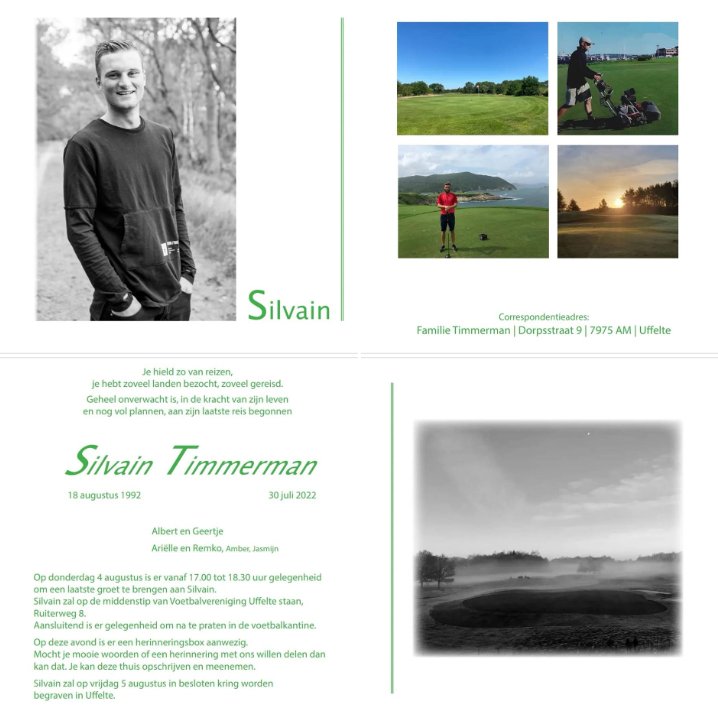 De redactie van het vakblad Greenkeeper bereikte het droevige bericht dat Silvain Timmerman op 30 juli zeer plotseling is overleden. De jonge greenkeeper werd onwel en is daaraan zaterdag 30 juli aan overleden. Silvain werd slechts 29 jaar.