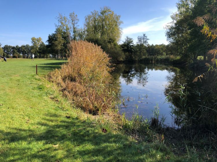 Over de baan verspreid bevinden zich veel bomen en zes waterpartijen. Een groep dode populieren ziet Van de Sande graag verdwijnen, ook al zijn er net nestkastjes in opgehangen. 'Wij denken erover om op die plek een extra waterbuffer te creëren. Dat is gunstig voor het infiltratievermogen van onze baan en dat is weer van belang voor de beregening', vertelt Van de Sande. 'Er is weliswaar fairwayberegening, maar die wordt nauwelijks gebruikt. Alleen om gras in leven te houden bij extreme droogte.'