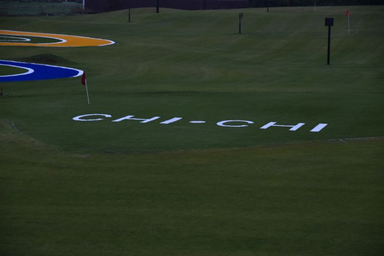 | | De naam 'Chi-Chi' staat in bescheiden afmetingen op de drivingrange |