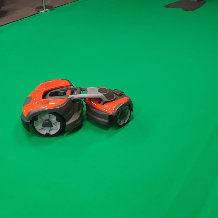Husqvarna toonde tijdens deze vakbeurs een nieuw maairobotje die met knikbesturing werkt. Het apparaat draaide onder belangstellende ogen rustig zijn rondjes.