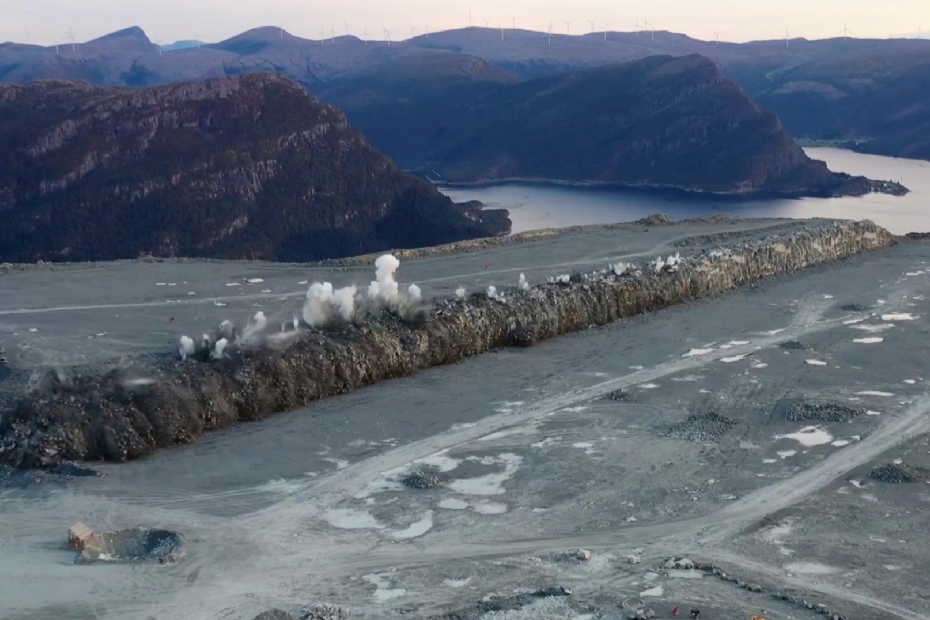 In de groeve Bremanger in Noorwegen wint Bontrup gesteente boven op de berg, op zo'n 800 m hoogte. Dat gebeurt door gericht telkens een schil van een stenen wand te dynamiteren. Na het verrichten van boringen in de wand van bovenaf, laat men springstof in de boorgaten zakken. Door de explosie springt het gesteente los, waarna er rookpluimen vrijkomen. De gedynamiteerde wandlaag vormt een hoeveelheid grof gesteente, dat naar beneden zakt. Door het laten springen van de wanden, worden de stenen terrassen afgebouwd. Hierdoor vormt zich een spaarbekken op de bergkruin, dat Bontrup wil gebruiken voor de oprichting van een waterkrachtcentrale.