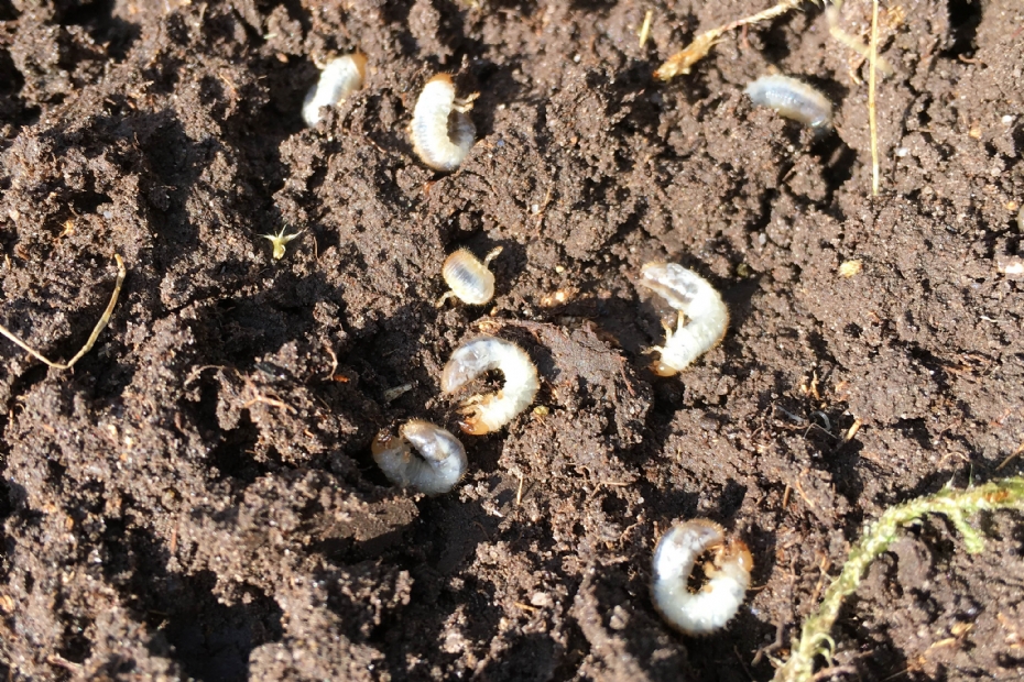 Engerlingen2 en emelten3 kunnen grote schade toebrengen aan grasvegetaties: