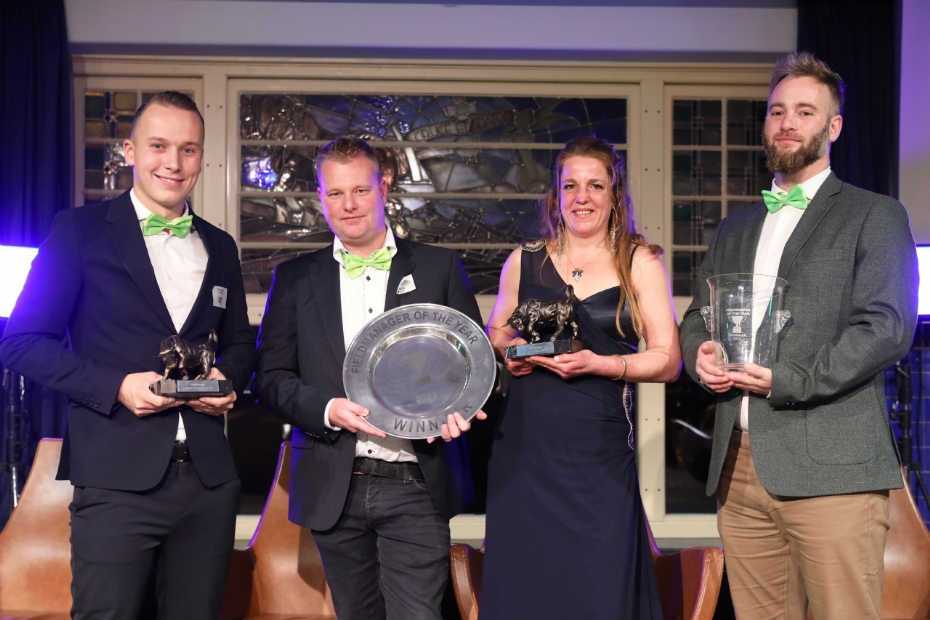 | Winnaars van 2023! Fieldmanager Student of the Year Thimo de Nijs, Fieldmanger of the Year Gertjan Hilarius, Toro Greenkeeper Student of the Year Desirée Mouw, Greenkeeper of the Year Lee Lennox |