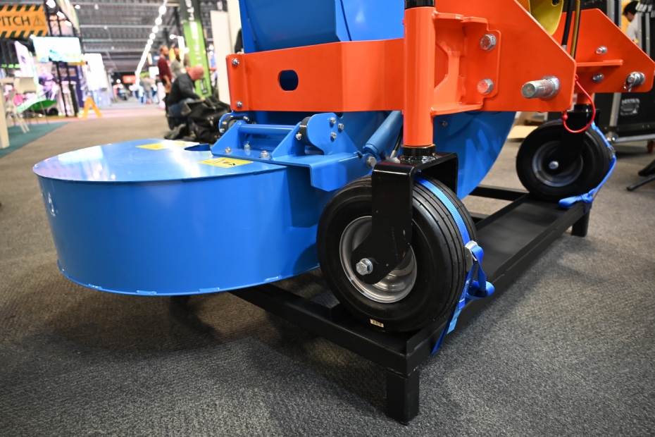 Andere opvallende kenmerken zijn de voorste zwenkwielen met rubberbanden die met foam zijn gevuld – wat het risico op lekrijden uitsluit – en een hydraulisch bedienbare achterklep waarmee de snelheid en richting van de luchtstroom kan worden aangepast. De blazer is bovendien uitgerust met een tandwielkast in plaats van een V-snaar, wat het onderhoud vereenvoudigt.