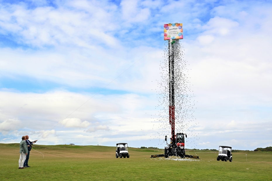 Hans Schaap en Joris Slooten trokken het openingskoord los, waarna een stortvloed aan golfballen uit een big bag neerdaalde op de driving range