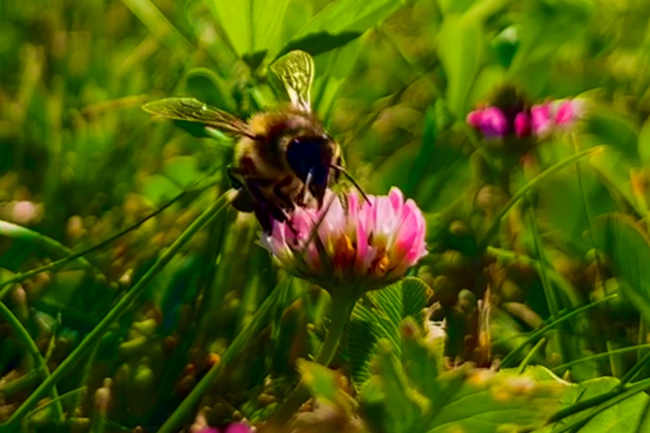 Het resultaat: proefvelden met Happy Lawn trokken tot 33 procent meer insecten aan dan klassieke grasvelden. Boogaarts toont buiten de insectencamera: 'We leggen soorten als lieveheersbeestjes, hommels, libellen en sluipwespen vast met camera's met bewegingssensoren. Zodra een insect op de insectenplaat gaat zitten, maakt de camera een foto.'