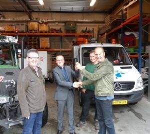 Fendt dealer Jan van Iperen uit Rijnsaterwoude overhandigde woensdag 9 juli jl. de sleutel van de Fendt 207 FA aan de wethouder van Gemeente Zwijndrecht.